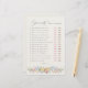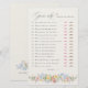 Add a fun and interactive moment to the bridal shower with this “Guess Who? Bride or Groom” game card. Guests answer playful questions about the couple by choosing whether the bride or groom best fits each one. From who made the first move to who will cry on the big day, this game is guaranteed to spark laughter and friendly competition.