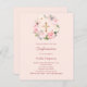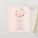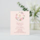 A soft pink blush colored background, decorated with watercolored pink and white flowers in a wreath and a golden cross. Personalize and add a name and details.
