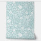 A delicate hand-drawn floral pattern featuring peony roses on a soft aqua blue background. This dense, symmetrical design has a gentle watercolor softness and a calm, elegant feel.