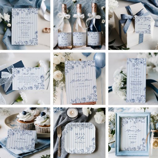 Send your guests home with a gift at your "something blue" bridal shower with our custom favor stickers featuring classic chambray stripes and navy floral line art.
