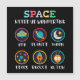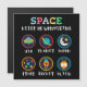 Playful space themed artwork made for curious kids and young students. Cute symbols like UFO, planet, moon, stars, rocket and alien help children explore space science and basic astronomy in a fun and friendly way.