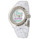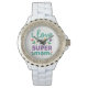 Sparkling Diamond Bezel Super Mom White Link Watch 腕時計