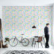 wallpaper with geometry design, many squares various sizes, pastel color tones