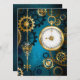 ターコイズ、質感、スチームパンクの背景と真鍮と金ゴールドのギア、銀の鍵と時計。ステームパンクスタイル。