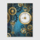 ターコイズ、質感、スチームパンクの背景と真鍮と金ゴールドのギア、銀の鍵と時計。ステームパンクスタイル。