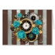 アンティークパターン(の模様が)ある時計、ジュエリー、金ゴールド時間の手と茶色のターコイズバラとラテン数字で飾らストライプのれ、背景。ステームパンクスタイル。