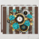 Steampunk時計とターコイズバラオンストライプの レターヘッド