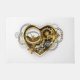 Mechanical, volumetric, steampunk heart with pressure gauge, steel and gold gears on white background. Steampunk style.