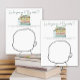 水の色の本のスタックは、緑の弓で結ばれる。もうすぐ新しい章が始まる。赤ちゃんシャワー本、新しい章。
