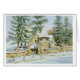 水彩画のStowell公園ロッジの雪場面の挨拶状。
