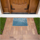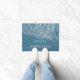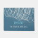 海岸色のドートウッドとケープコッドの青のペアは静かに彼らの靴を取り除くことを思い出させるコースタルカラーのdoormat。中央に染み込んだ青い水色。ソフトフォーカスパステルで印刷されたストリングライト。