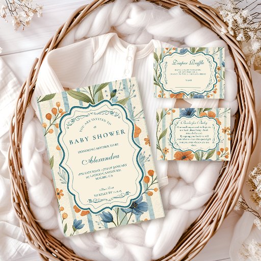 Striped Wildflower Baby Shower 招待状