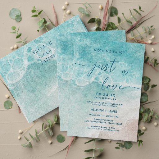 Summer Ocean Blue Beach Elegance Wedding Invitation