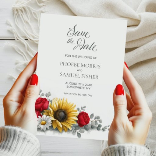 Invite your friends and loved ones to celebrate your union with this sunflower and red rose floral wedding invitation. The customizable text allows you to effortlessly add the bride and groom’s names, wedding date, and the necessary details of your celebration. A variety of paper types and corner styles are available for your unique invitations, along with the option to download if you prefer a digital format.