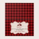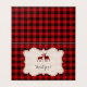狩り素朴テーマルックデザイン:赤いバッファローのフレームと洗浄された古いバ点々のあるーンの形状、デアー、モミの木、すべて赤い黒いバッファローのプレイドの背景として。ツールカスタマイズを使って情報を追加する。マッチ商品はLumberjackパーティーコレクションへ。