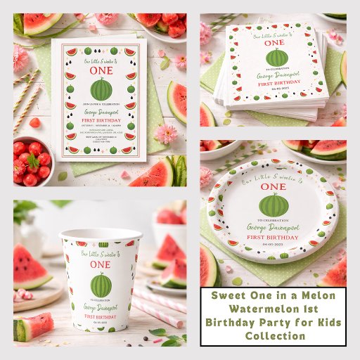 Sweet One in a Melon Watermelon 1st Birthday Party 招待状