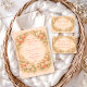 This romantic peach garden collection features soft watercolor peaches, blush florals, and delicate ribbon bows arranged in an elegant vintage-style frame. The warm pastel palette and airy botanical details create a timeless, feminine look that feels both sweet and refined. Perfect for a peach-themed celebration, this design pairs beautifully with garden, cottage, and storybook-inspired baby showers.