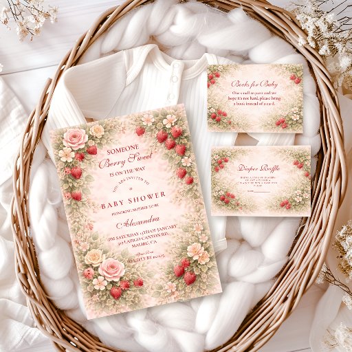 strawberry baby showerberry sweet themestrawberry invitationpink berry floralstrawberry gardenstrawberry party decorfeminine baby showerspring baby celebrationsummer baby partyfloral strawberry design
