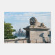 ハンガリーのブダペスト – ブダペスト・チェーン・ブリッジのライオンとハンガリー議会の背景