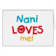 Nani Loves Me Tシャツ、カード、シール、ボディスーツのバッグなど、カラフルレッド、イエロー、ブルーの文字とハートデザイン。このナニの贈り物でナニスマイル!