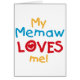 My Memaw Loves Me Tシャツ、ボディスーツ、カード、シール、トートバッグ、磁石、ステッカー、その他のMemaw Loves Meのアパレルとギフトは青、赤、黄色文字デザイン。