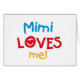 Mimi Loves Me Tシャツ、カード、シール、ボディスーツのバッグなど、カラフルレッド、イエロー、ブルーの文字とハートデザイン。このミミは私のアパレルとギフトアイテムがミミのスマイルを作る!
