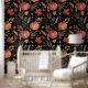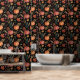 A vibrant watercolor pattern capturing the essence of fall. This design features classic autumn elements like plump pumpkins, colorful maple leaves, and delicate berries against a dark background, perfect for adding a touch of cozy seasonal charm to any product.