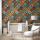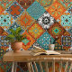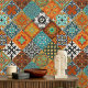 Add vibrant Mediterranean flair to your home with this colorful coordinated collection of 18 mix-and-match tile designs in orange, blue, brown, black, and white. Featuring rich, bold tones, this mosaic-inspired print brings warmth and artistry to any space. Perfect for creating southwestern, bohemian, or Spanish-style décor accents.