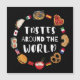 Culinary journey around the globe. From pizza to sushi, this artwork combines iconic dishes from different countries. Perfect for foodies and travel lovers.