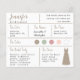 Taupeの花嫁案内カード結婚で、日付と場所、色、結婚ブライダルパーティ、花嫁のドレス、花嫁提案メッセージについての情報を含む。上の角離れには、花嫁の名前がtaupe手書き文字で表されている。右下の角にはトープのドレスがある。中央には円の色結婚がある。ドレスの色も含め結婚て色を変えられる。