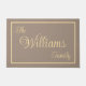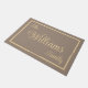 Elegant welcome doormat with a taupe script on a brown background. Personalize with your family name or text.