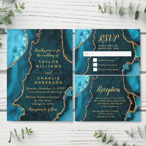 Teal Blue and Gold Agate Marble Wedding メニュー