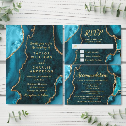 Teal Blue and Gold Agate Wedding Program プログラム