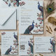 This vintage-inspired Teal Peacock Hand-Drawn Wedding Menu features custom hand-drawn illustrations of an exotic blue and teal peacock nestled within a lush arrangement of Magnolia greenery. Showcase the vibrant contrast of cream and blush pink magnolia flowers, all set against an elegant, rich teal background. The reverse side includes a coordinating seamless floral and bird pattern. This fully editable wedding reception dinner menu is perfect for a whimsical garden, botanical, or exotic bird-themed wedding. Personalize every detail, from the bride and groom’s names to your complete four-course plated meal itinerary, including appetizers, main courses, dessert selections, and custom cocktails.