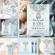 Celebrate the arrival of your baby with our teddy bear baby shower design for a boy! The design features a cute bear flying in a basket with blue and brown balloons. It also features modern typography and the phrase "We can Bearly Wait" in blue, perfect for an unforgettable baby shower. For complementary products, please check out the collection of this cute baby shower design for a boy.