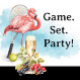 Tennis  Flamingo  with racket and ball invitation Tennis  Flamingo  with racket and ball invitation  (裏面)Tennis  Flamingo  with racket and ball invitation  (スタンド正面)