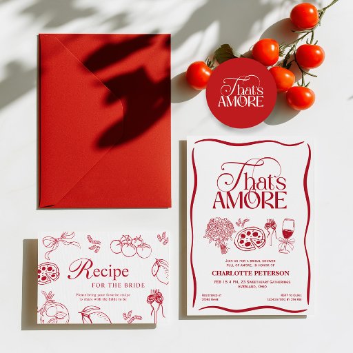 Perfect for a bridal shower inspired by amore, Italian elegance, and timeless romance, this design blends playful details with a sophisticated aesthetic. Ideal for hosting a chic gathering filled with love, style, and a touch of Italy.