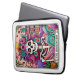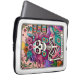 Vibrant, colorful design featuring a funny tarot card with a female skeleton. The skeleton has wild pink hair with flowers in it, a sugar skull face, and is holding a open book. The colorful text reads: "The bookworm". This design is available on a wide variety of products.