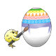 The two yellow chickens paint a beautiful Easter egg for the egg hunt.