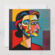 The Mask and the Monster - Portrait of a Deceiver. A vivid cubist portrait capturing the haunting dichotomy of a woman with a polished, genteel façade hiding a snarling, vindictive temperament. The dual expressions symbolize the disarming charm and sudden cruelty some individuals wield, revealing their sociopathic tendencies through psychological manipulation and coercive control.