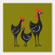 My true love gave me three French Hens on the third day of Christmas. A beautiful mid-century design of three hens, representing the theological virtues of faith, hope, and charity. A visual design symbol of the stick-in-your-head Christmas carol or song.