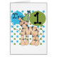 最初の誕生日のTシャツ、ボディスーツ、カード、マグネット、トートバッグなどで、「私は1」のバルーンと水玉模様と文字に囲まれたパーティー帽子のトラ。