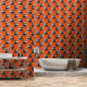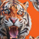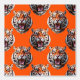 Seamless Repeat Roaring Tiger Head Pattern Design On Orange Background