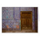 Toshxauli宮殿、Khiva、ウズベキスタンでencausticのタイルで覆われる壁の華美な木のドア。 ザビーンSteinmüller著写真撮影。