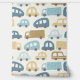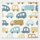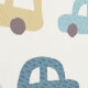 This hand-illustrated pattern features charming toy cars and trucks in dusty blue, sand, and beige tones on a soft cream background — perfect for a modern baby boy nursery. Each vehicle has its own unique texture and personality, making this design playful yet sophisticated.