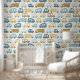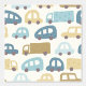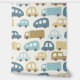 This hand-illustrated pattern features charming toy cars and trucks in dusty blue, sand, and beige tones on a soft cream background — perfect for a modern baby boy nursery. Each vehicle has its own unique texture and personality, making this design playful yet sophisticated.