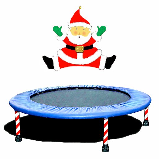Unique Christmas magnet stocking stuffer, holiday gift or party favors featuring funny Santa Claus jumping on a trampoline.