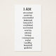 この黒はっきりした白の名刺は、ライフシンボルの大きなケルトスタイルツリーを備え、前面にいくつかのカスタマイズ可能な文字フィールドを備えている。精神性と啓蒙関連の商品やサービスを扱うギフトショップに最適。背面の肯定前向きは、健全な自己イメージのための強力なI AMステートメントであり、潜在的なクライアントや顧客が自分の冷蔵庫や財布にあなたの名刺を保見て、時間と時間を繰り返す可能性を高める。
