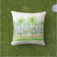 Tropical Beach Shack Outdoor Pillow; Hand Drawn Imaginary in ink and watercolor