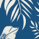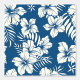 A tropical white floral print on a bright blue background